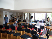 | 「コレクティブハウスかんかん森」2周年パーティーが開催されました 2005.07.03 去る7月3日に,東京都荒川区のコレクティブハウスかんかん森で、2周年パーティーが開催されました.居住者の皆さんに加え,関係者などがお祝いに駆けつけました.本研究室からも数名6人がお邪魔させていただきました. 当日は13時半から第一部と称して,バンドの演奏が披露され,手作りケーキとお茶等で皆さんと楽しい時間を過ごしました.17時半からは第二部として,手巻き寿司とお酒で皆さんでお祝いをしました. 手作りのケーキや料理はパーティーの何日も前から準備がされていたそうです.どうりでおいしいはずです. 2年も経つと,新しい居住者さんが越してきたり,花壇の緑も生い茂り,小さかった子どもも大きくなり...というように,とても成長していました. 『共に住む』ということの中には,色々な大変なこともある生活ではあると思いますが,それ以上の嬉しさや楽しさがあるコレクティブハウスかんかん森である,と訪れるたびに居住者さんの生き生きした表情を見て思います. 今回は,このような貴重な機会にお邪魔することができて,とても良かったです.ありがとうございました. これからもかんかん森の更なるご清栄をお祈り致します。 報告:修士2年 稲葉 その子 |